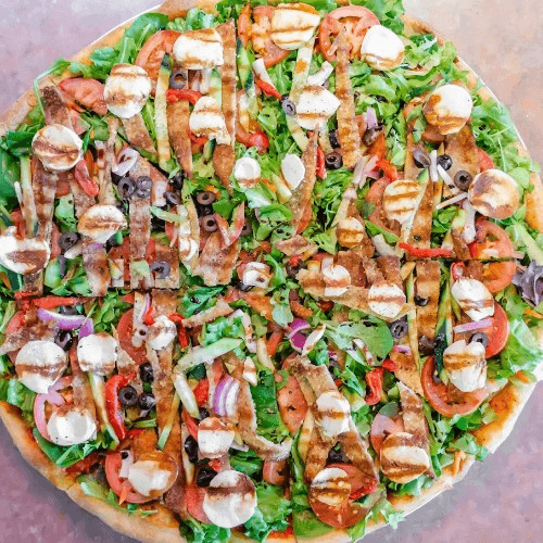 Mixed greens, roasted peppers, fried eggplant, tomatoes, olives, onions & fresh mozzarella