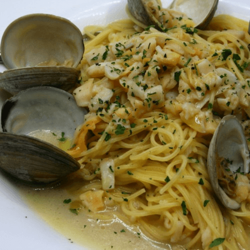 Chopped clams, garlic, diced shrimp, lemon & white wine sauce