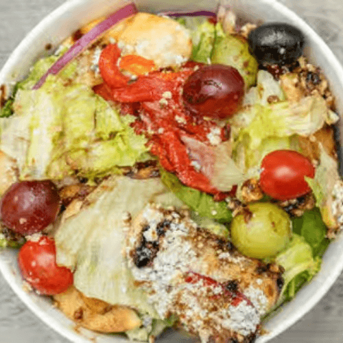 Grilled chicken, mushrooms, artichokes, olives, tomatoes, onions and roasted peppers